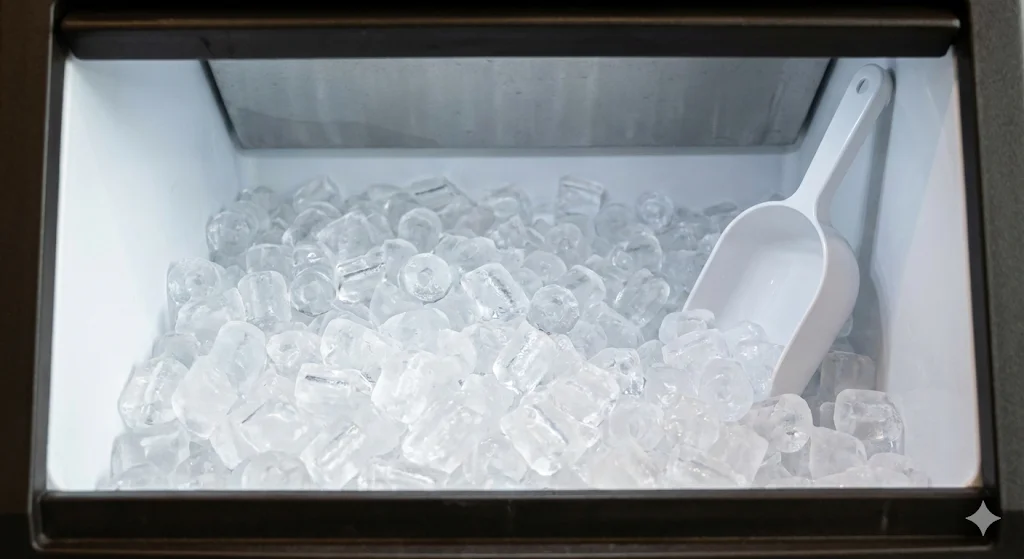 제빙기 안쪽의 물때나 곰팡이는 단골 지적 사항입니다. 주기적으로 내부를 비우고 전용 세정제로 세척 및 소독해야 하며, 얼음 주걱 또한 사용 후 반드시 소독된 용기에 보관해야 합니다.