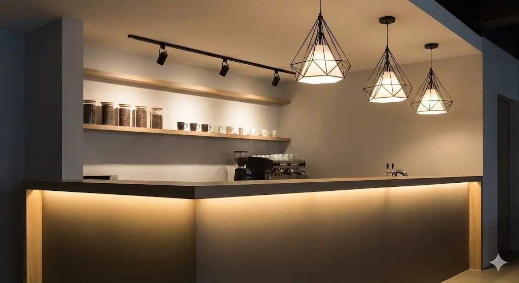 시선 유도: 조명 배치를 통해 고객의 시선이 머물기를 바라는 곳(예: 시그니처 메뉴 진열대, 포토존)에 빛을 집중시키고 주변에 자연스러운 음영을 주면, 사진 속에서도 주제가 명확히 드러나게 됩니다.