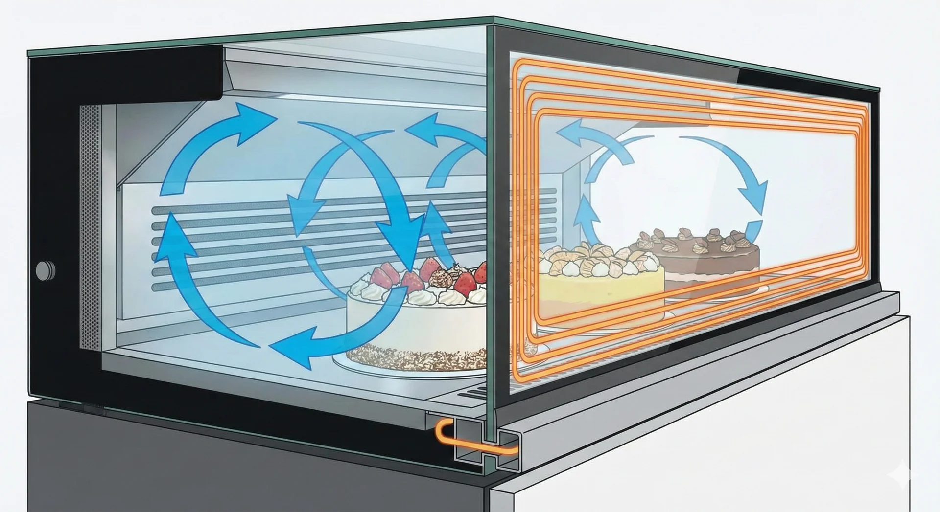 장비를 고를 때 놓치지 말아야 할 부분은 바로 냉각 방식입니다. 간접 냉각 방식은 찬 바람을 순환시켜 온도를 일정하게 유지해 주는데, 이때 바람이 너무 강하면 케이크 표면이 딱딱하게 마를 수 있어요.
