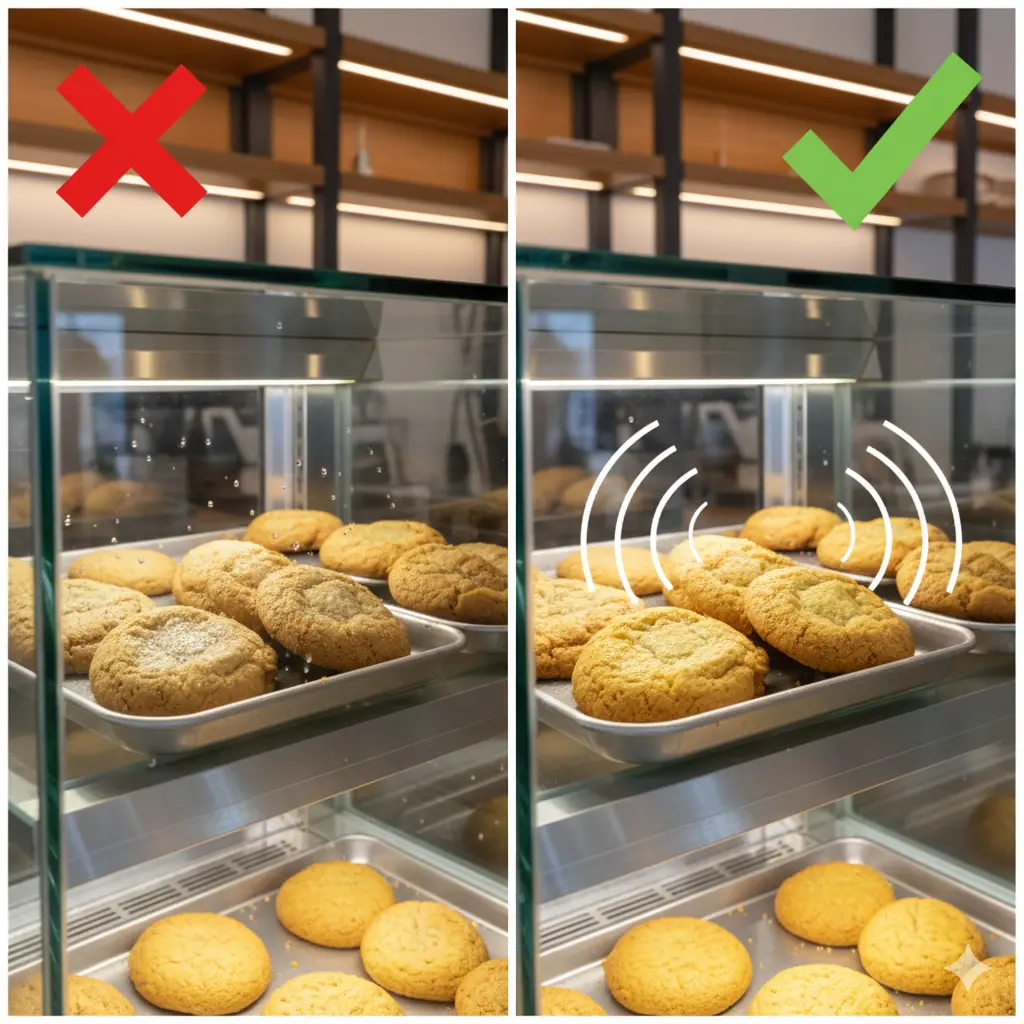 많은 사장님이 온도가 문제라고 생각하시지만, 사실 쿠키의 식감을 결정하는 핵심은 공기 중의 습도 제어와 미세한 공기 순환 설계에 있습니다.