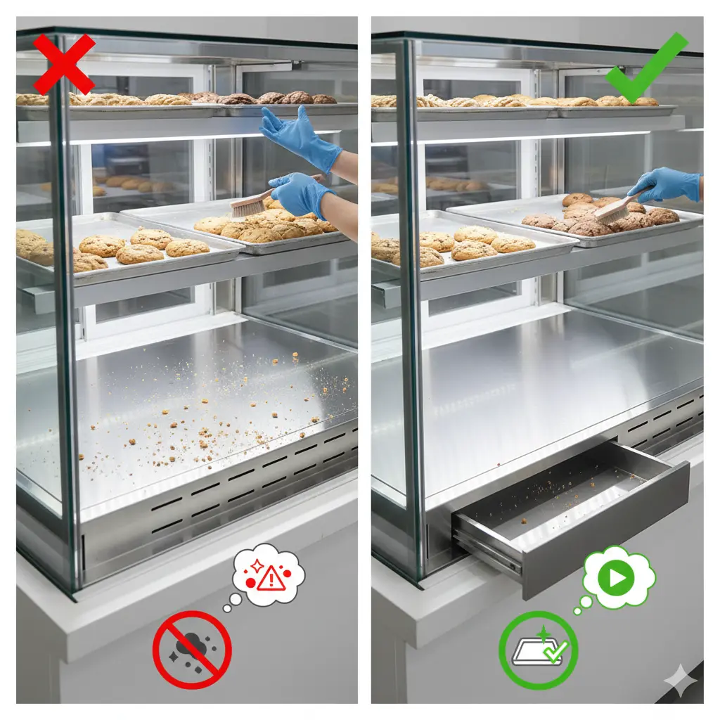 베이커리 매장에서 위생은 신뢰의 척도입니다. 쿠키진열대 틈새에 낀 부스러기는 미관상 좋지 않을 뿐만 아니라 장기적으로 위생 문제를 야기할 수 있습니다.