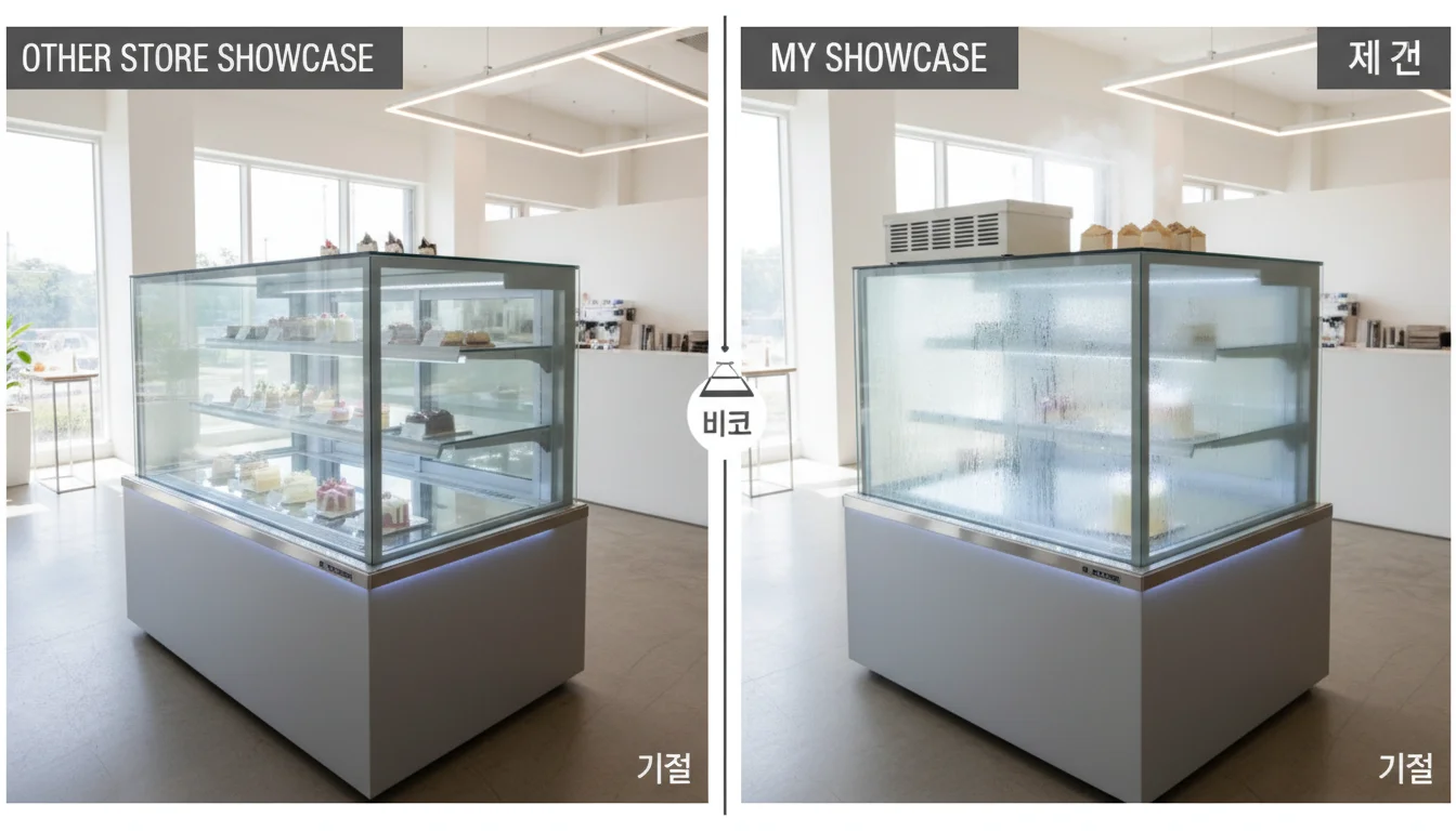 비 오는 날이나 습도가 높은 여름철, 쇼케이스 유리가 뿌옇게 흐려져 안에 있는 케이크가 보이지 않는 경험, 해보신 적 있으신가요?