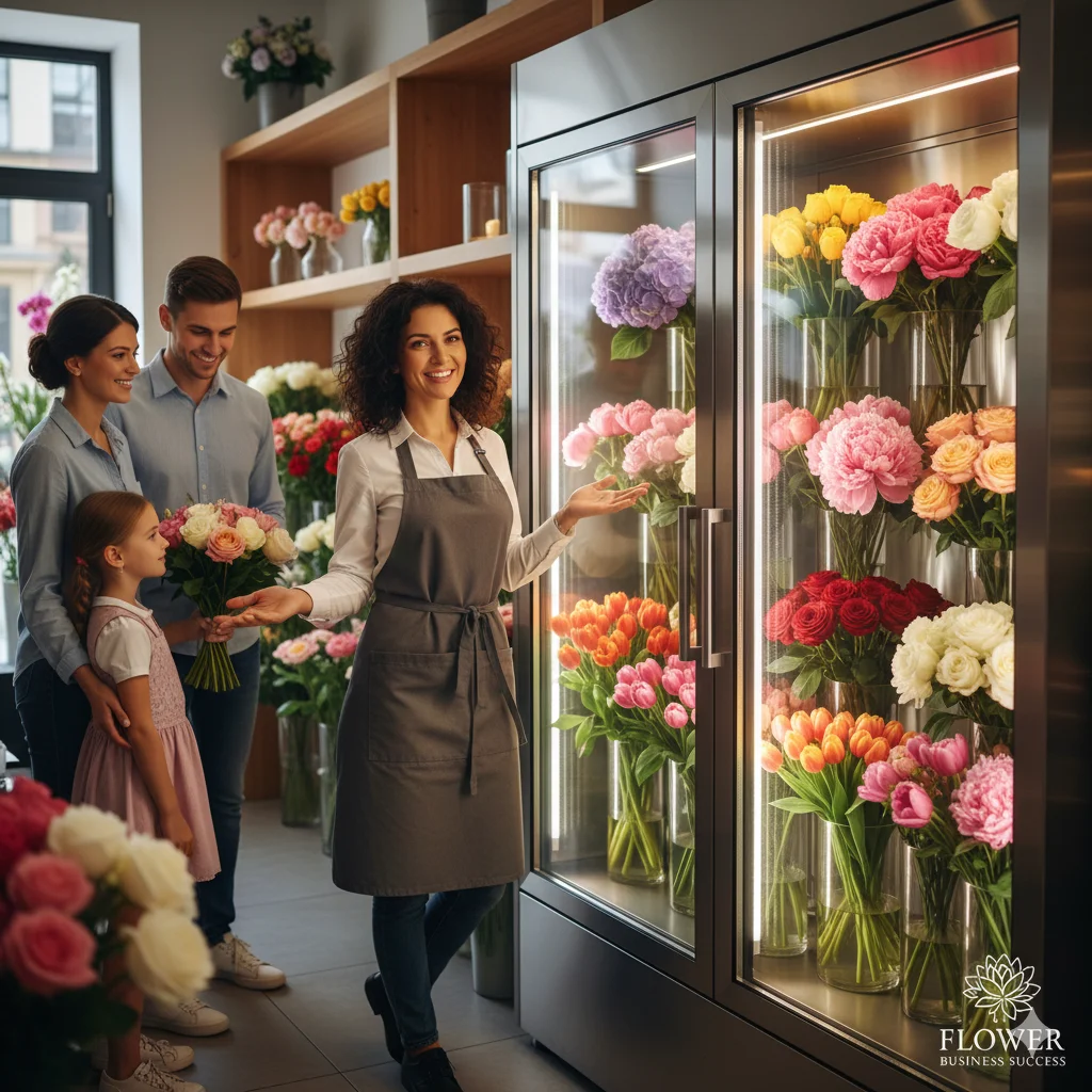 "우리 플라워샵이 그동안 건조한 쇼케이스 때문에 꽃의 수명을 단축시켰다는 걸 알게 됐어요. 이제 정밀한 습도 제어 기능과 꽃의 색감을 살려주는 전문 LED 조명이 탑재된 쇼케이스를 선택해서 상품의 신선도와 매력을 극대화할 수 있겠네요!"