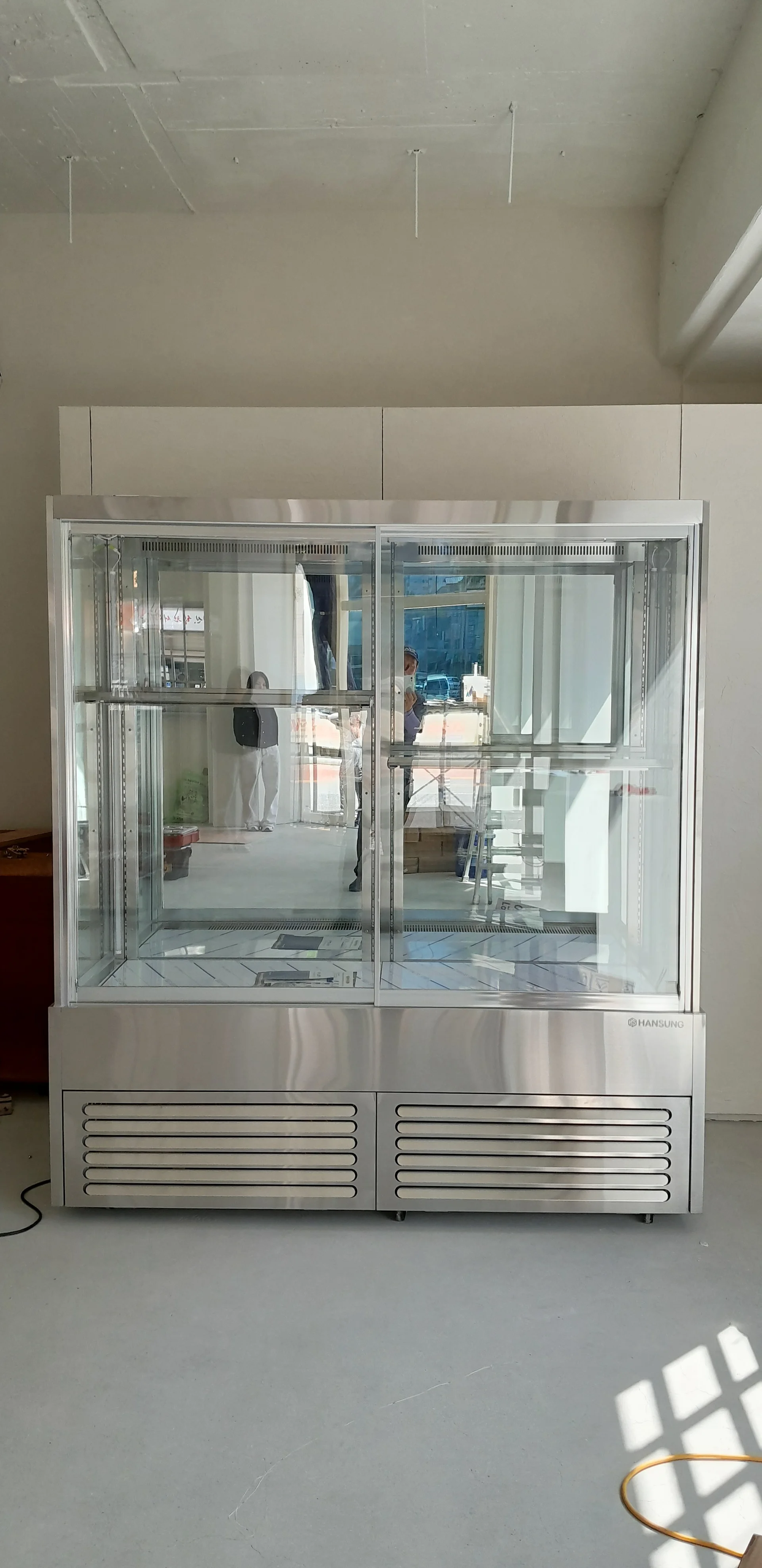 피오레 꽃냉장고는 하치형 구조로 제작되었는데요. 하치형이란 냉장고 하단에 냉각 장치가 위치한 구조를 말합니다. 이 방식은 아래에서 위로 찬 공기가 자연스럽게 순환하며 올라가기 때문에 냉기가 쇼케이스 전체에 골고루 퍼지는 효과가 있습니다. 특히 높이가 2000mm인 대형 꽃냉장고에서는 하단부터 상단까지 균일한 온도를 유지하는 것이 매우 중요한데, 하치형 구조는 이러한 요구를 완벽하게 충족시켜줍니다. 덕분에 어느 위치에 놓인 꽃이든 똑같이 신선한 상태로 보관되어 고객님들께 항상 싱싱한 생화를 선보이실 수 있습니다.