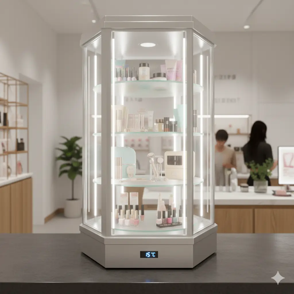 투명한 유리 속에서 빛나는 화장품들이 사장님의 매장을 더욱 품격 있게 만들고, 고객의 신뢰를 얻어 매출 대박으로 이어지기를 진심으로 응원합니다!