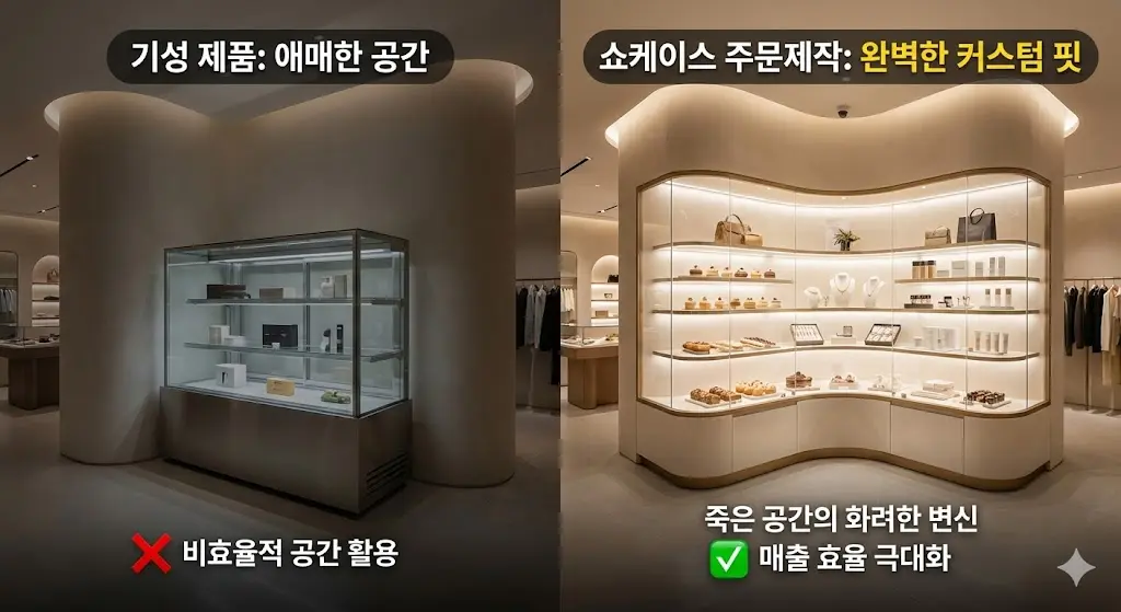 ์‡ผ์ผ€์ด์Šค์ฃผ๋ฌธ์ œ์ž‘์˜ ๊ฐ€์žฅ ํฐ ์žฅ์ ์€ ์šฐ๋ฆฌ ๋งค์žฅ์˜ ๊ตด๊ณก์ง„ ๋ฒฝ๋ฉด์ด๋‚˜ ํ‹ˆ์ƒˆ ๊ณต๊ฐ„์— ๋”ฑ ๋งž์ถ˜ '์ปค์Šคํ…€ ํ•(Custom-Fit)'์ด ๊ฐ€๋Šฅํ•˜๋‹ค๋Š” ๋†€๋ผ์šด ํšจ์œจ์„ฑ์— ์žˆ์Šต๋‹ˆ๋‹ค. ๊ธฐ์„ฑ ์ œํ’ˆ์„ ๋†“๊ธฐ์—” ์• ๋งคํ•˜๊ฒŒ ๋‚จ๋Š” ์žํˆฌ๋ฆฌ ๊ณต๊ฐ„์„ ํ™”๋ คํ•œ ์ง„์—ด ๊ณต๊ฐ„์œผ๋กœ ์™„๋ฒฝํžˆ ์น˜ํ™˜ํ•˜์—ฌ, ๋งค์žฅ ๋ฉด์  ๋Œ€๋น„ ์ตœ๊ณ ์˜ ๋งค์ถœ ํšจ์œจ์„ ๋ˆ„๋ฆด ์ˆ˜ ์žˆ์Šต๋‹ˆ๋‹ค.