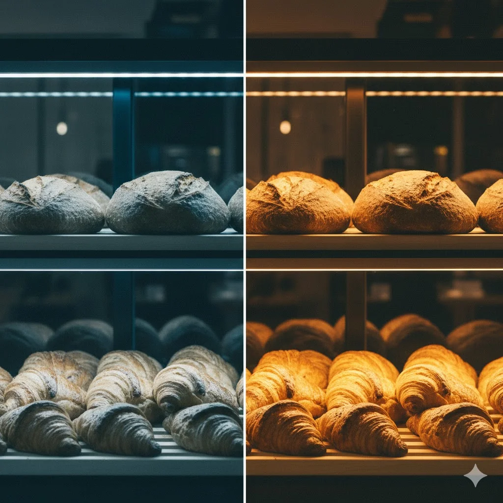 ๊ณ ๊ฐ์ด ๋นต์„ ๋ณด๊ณ  '์‚ฌ๊ณ  ์‹ถ๋‹ค'๊ณ  ๋А๋ผ๊ฒŒ ํ•˜๋Š” ๊ฒƒ์€ ์กฐ๋ช…๊ณผ ์ง„์—ด ํ˜•ํƒœ์— ๋‹ฌ๋ ค์žˆ์Šต๋‹ˆ๋‹ค.