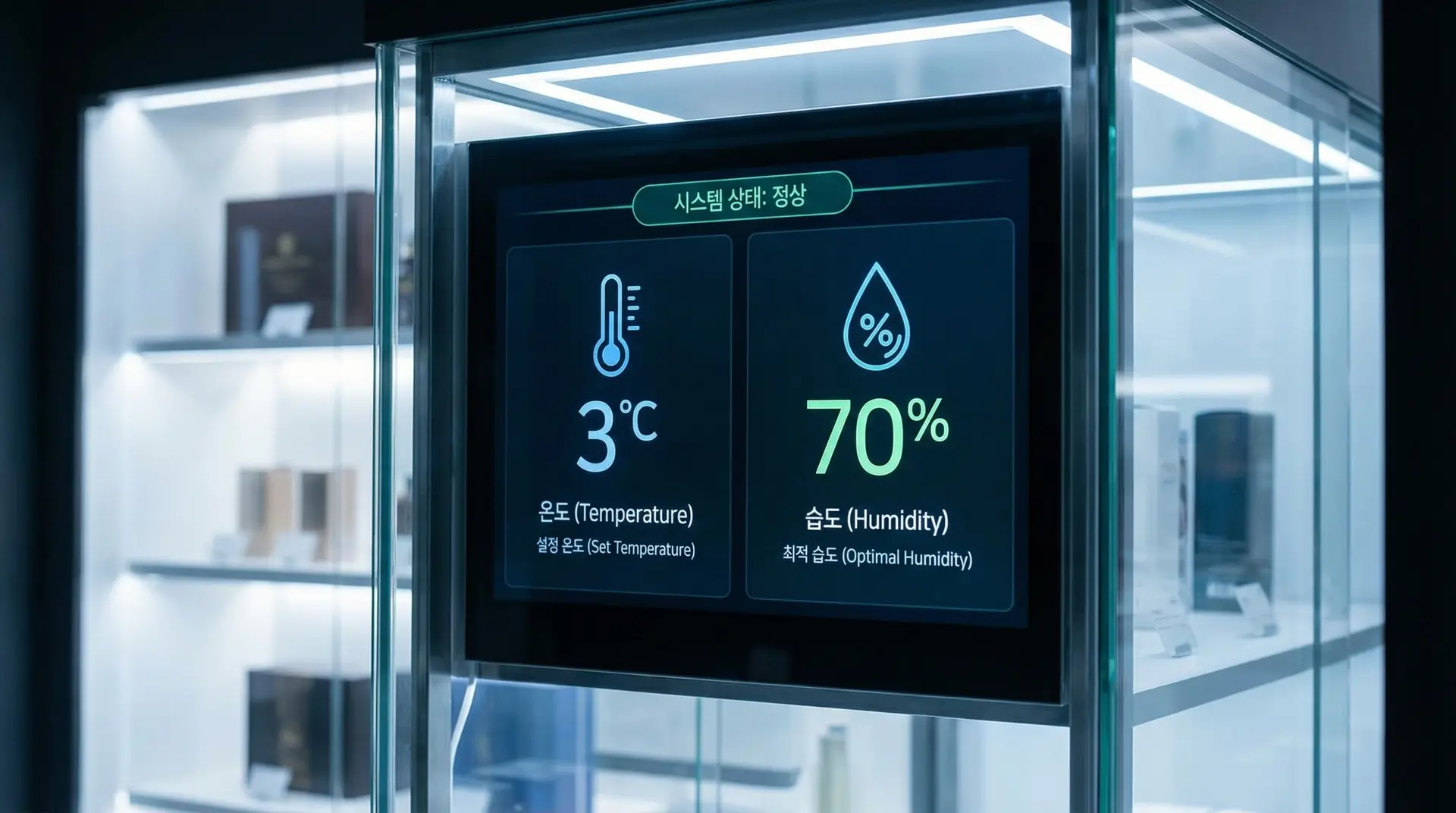 A: ์˜จ๋„๋งŒํผ ์ค‘์š”ํ•œ ๊ฒƒ์ด ๋ฐ”๋กœ '์Šต๋„ ์ œ์–ด'์ž…๋‹ˆ๋‹ค. ์ œ๊ณผ ์ „์šฉ ์‡ผ์ผ€์ด์Šค๋Š” ์ผ๋ฐ˜ ๋ƒ‰์žฅ๊ณ ์™€ ๋‹ฌ๋ฆฌ ์ ์ • ์Šต๋„๋ฅผ ์œ ์ง€ํ•˜๋Š” ์ •๋ฐ€ ์ œ์–ด ์‹œ์Šคํ…œ์ด ํƒ‘์žฌ๋˜์–ด ์žˆ์Šต๋‹ˆ๋‹ค.