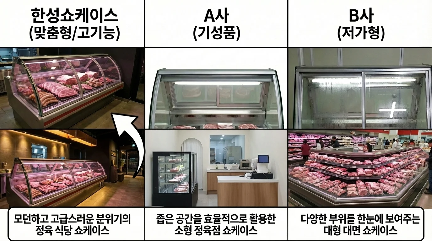 ํ์ฑ์ผ์ผ์ด์ค๋ ๋ด ๋งค์ฅ์ ๊ผญ ๋ง๋ ๋ง์ถคํ ๋์์ธ๊ณผ ์ฌ์ด์ฆ๊ฐ ํ์ํ๊ณ , ์ฅ๊ธฐ์ ์ธ ๋ด๊ตฌ์ฑ๊ณผ ๋ฐ์ด๋ ๊ณ ๊ธฐ ๋ณด๊ด ์ฑ๋ฅ์ ์ต์ฐ์ ์ผ๋ก ์๊ฐํ๋ ์ฌ์ฅ๋๋ค์๊ฒ ์ต๊ณ ์ ์ ํ์ด ๋ ์ ์์ต๋๋ค.