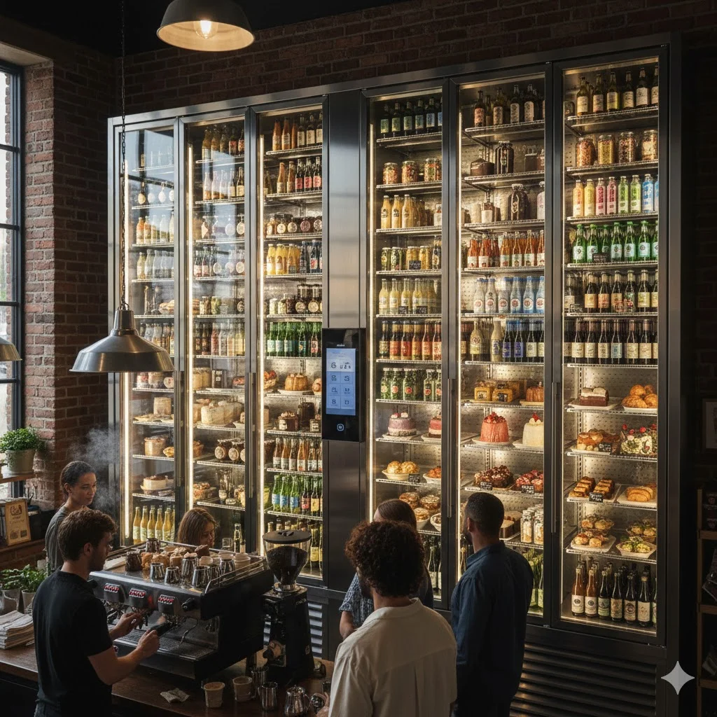일반 가정용이나 저가형 업소용 냉장고는 잦은 문 개폐와 높은 실내 온도 변화에 대응하기 어렵습니다. 특히 쇼케이스 형태의 카페 냉장고는 고객 노출을 위해 전면 유리가 필수인데, 냉기 손실이 크므로 고성능 컴프레서와 강력한 단열 설계가 필수입니다.