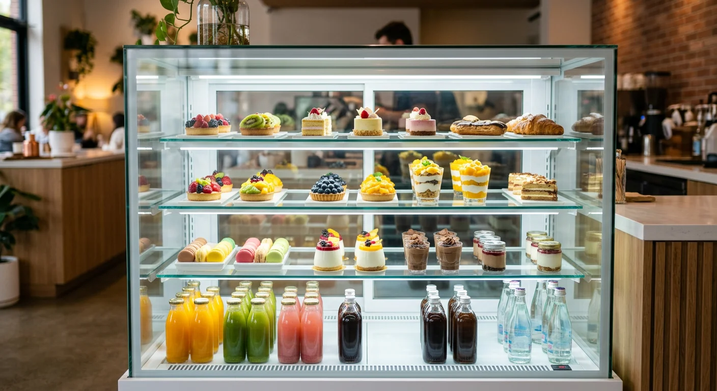 매장의 일일 평균 판매량과 재고 회전율을 현실적으로 계산하여 용량을 정해야 합니다. 15~20평 내외 개인 카페의 경우, 900mm~1200mm 가로폭을 가진 2도어 또는 3도어 쇼케이스가 활용도가 높고 밸런스가 좋습니다.