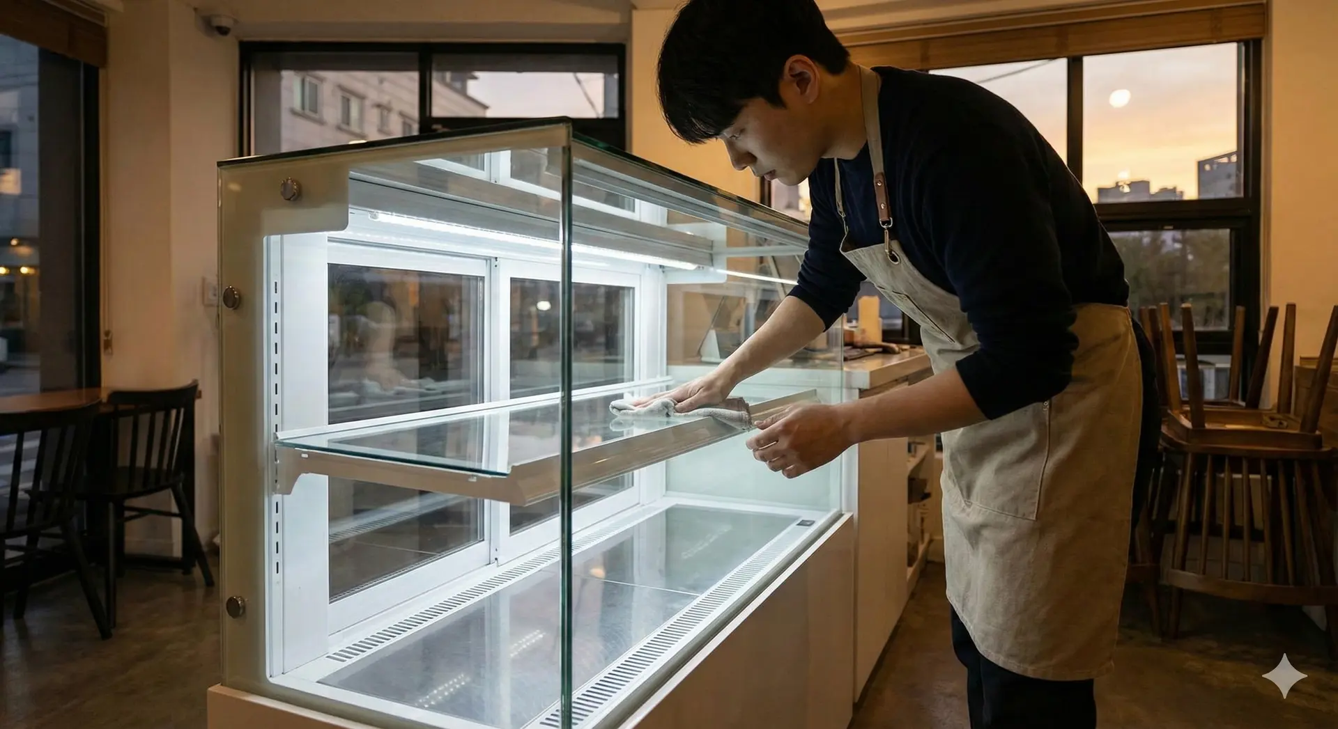 둘째는 내부 선반의 견고함과 청소의 용이성이에요. 식품을 진열하는 만큼 매일 닦고 관리해야 하는데, 구조가 복잡하면 위생 관리가 소홀해지기 쉬워요.