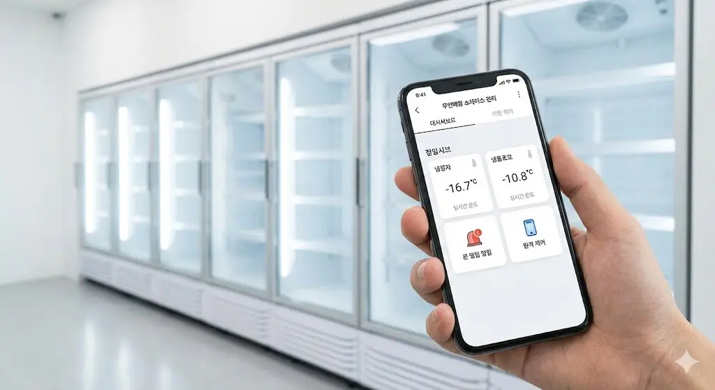 매장에 가지 않아도 스마트폰으로 실시간 온도를 체크하고, 문 열림 상태나 이상 징후 발생 시 즉시 알림을 받을 수 있어 무인매장 관리가 획기적으로 편해지기 때문이지요.
