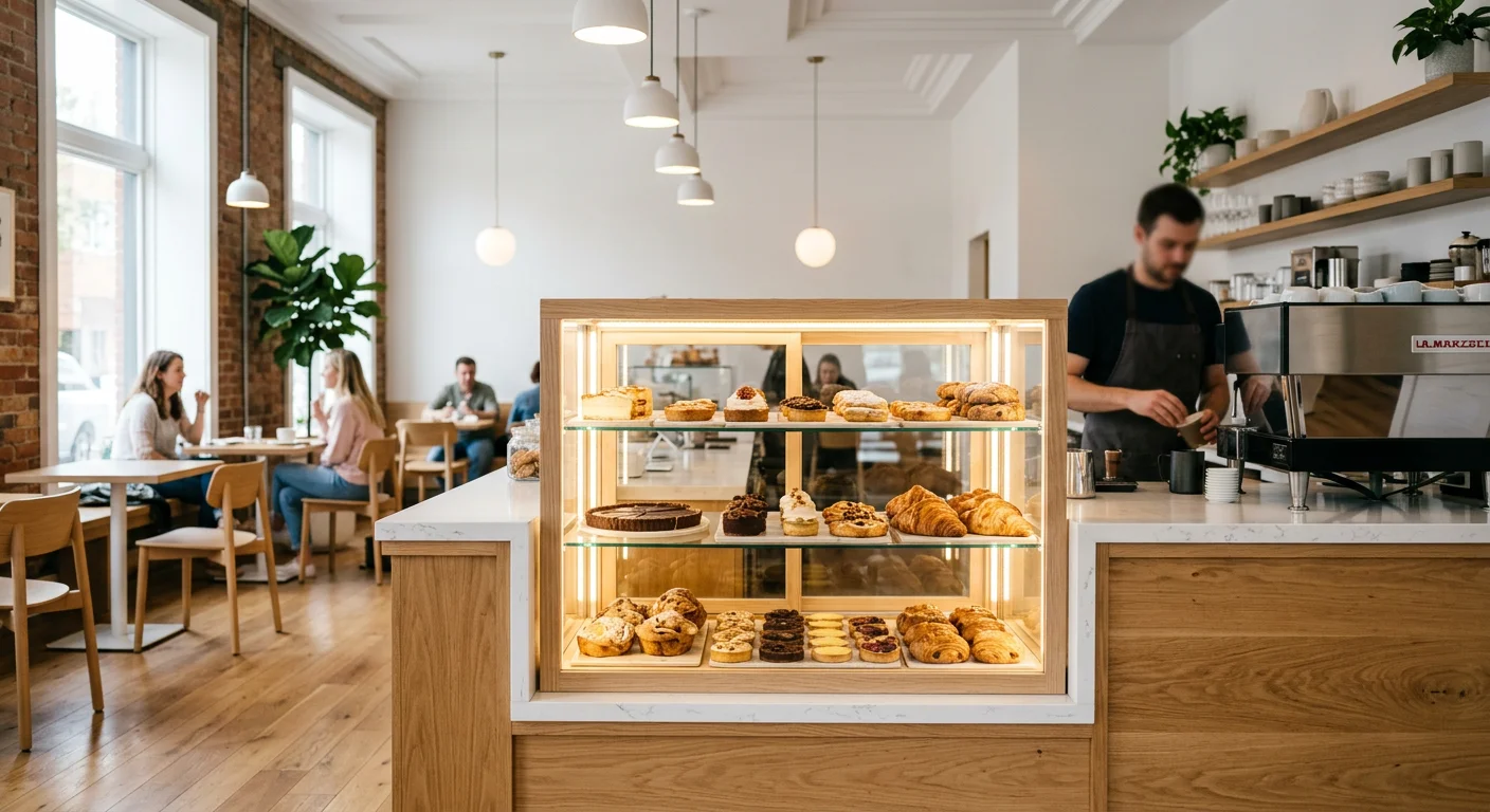 고객이 문을 열고 들어왔을 때 가장 먼저 시선이 가는 곳이 디저트 진열 공간이며, 여기서 지갑이 열리는지가 결정됩니다.