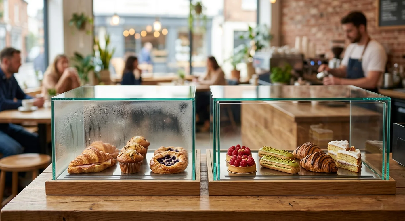 하지만 수제 케이크나 마카롱처럼 퀄리티가 생명인 고급 디저트 카페를 준비한다면, 결로 방지 기능이 탁월하고 마감이 훌륭한 프리미엄급 진열장에 투자를 추천합니다.