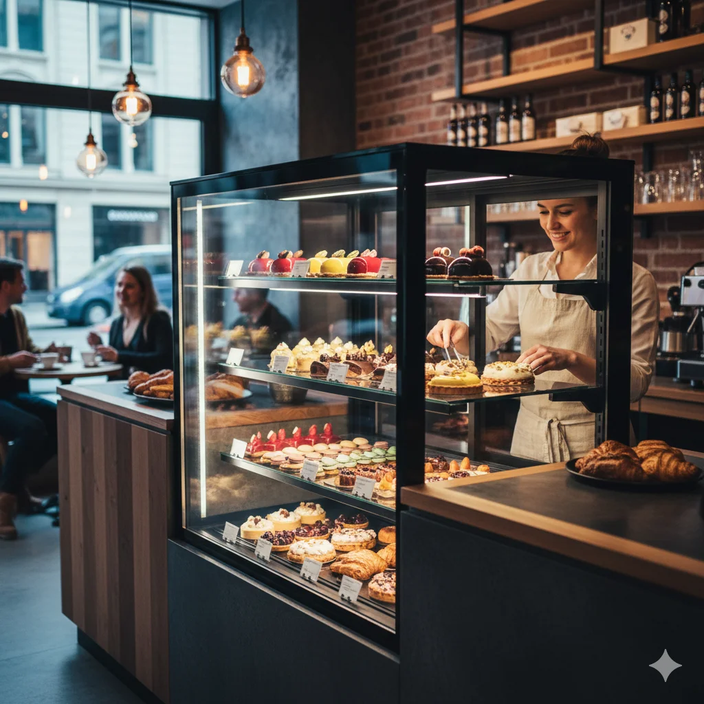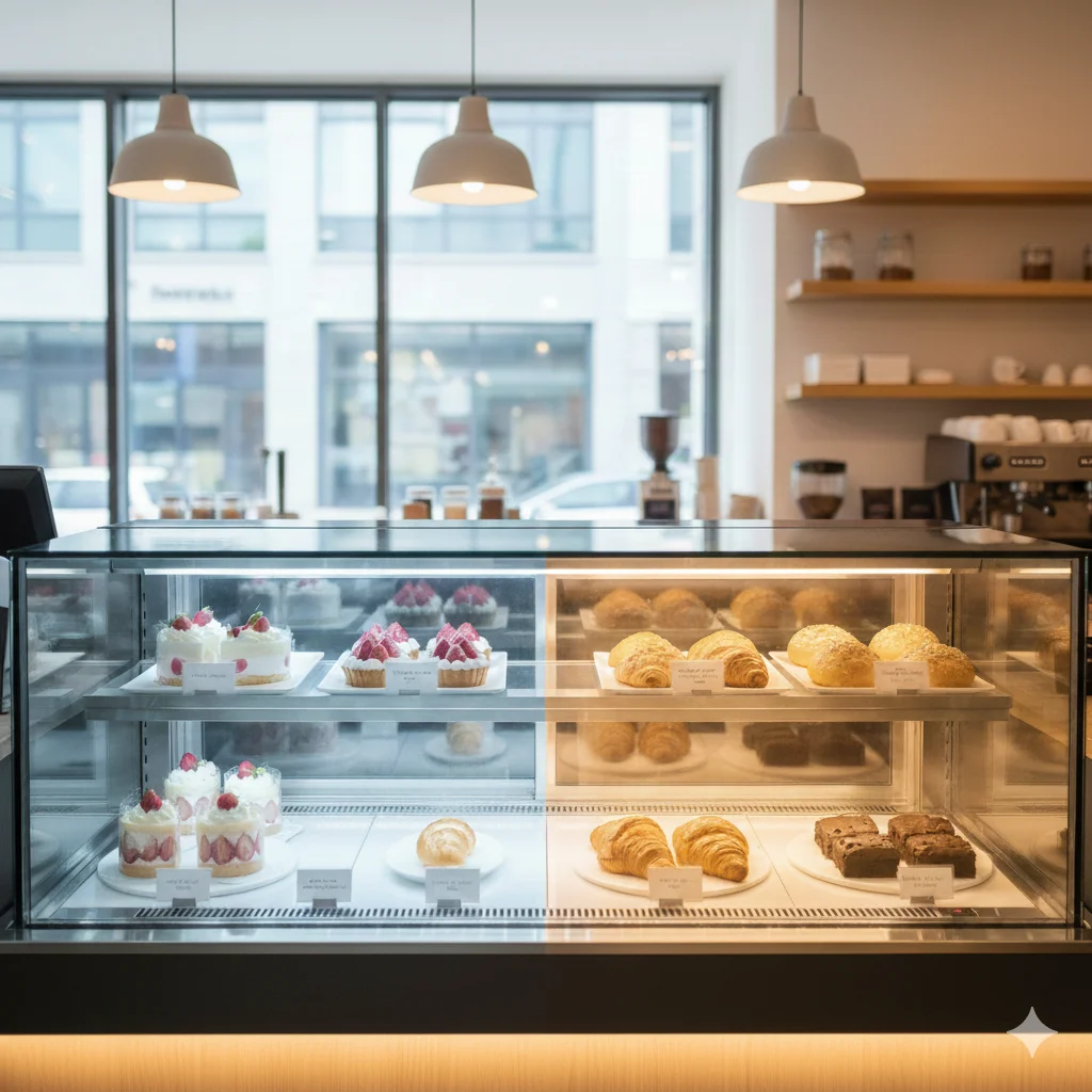 쇼케이스는 단순히 음식을 차갑게 보관하는 기계가 아니죠. 매장의 인테리어를 완성하고, 가장 비싸고 중요한 상품들(케이크, 마카롱, 샌드위치 등)을 고객의 눈에 가장 맛있고 신선하게 보이도록 하는 '매출의 심장'이랍니다.