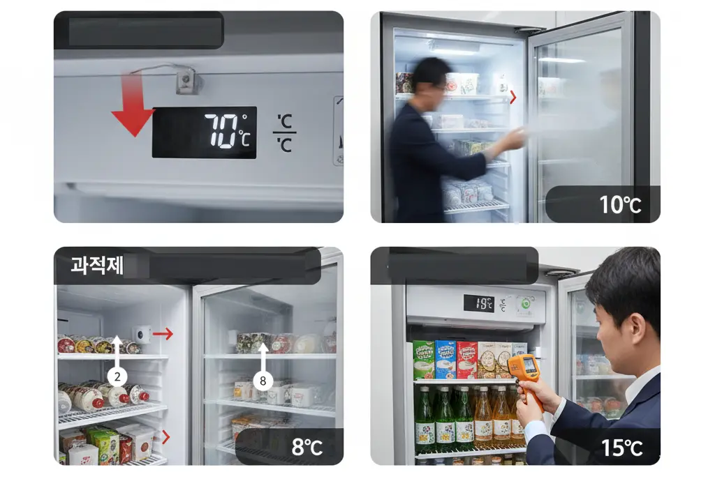 โ ๋ด๋ถ ์จ๋ ์ค์ ์ค์กฐ์: ์จ๋ ์กฐ์ ๊ธฐ๋ฅผ ์๋ชป ๋ง์ ธ ์ ์ ์จ๋(์๋ฃ 1~4โ, ์์์ฌ 0~2โ, ๋ง๊ณ ยท๋์ ํธ๋ฅ 3~6โ)๋ณด๋ค ๋๊ฒ ์ค์ ๋๋ ๊ฒฝ์ฐ๊ฐ ๋ง์ต๋๋ค.