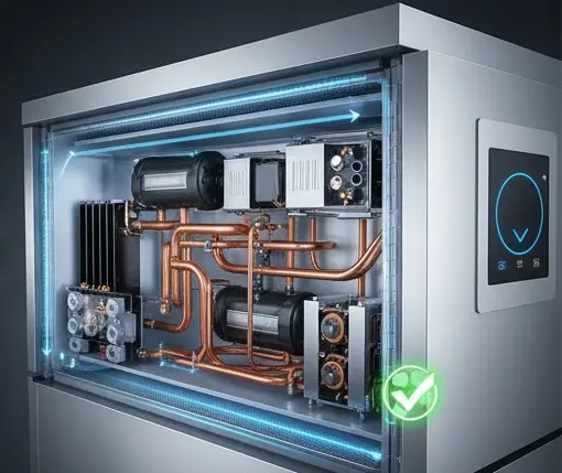 일부 고성능 초저온 냉동고는 컴프레서가 두 개로 나뉜 듀얼 시스템을 사용합니다.
