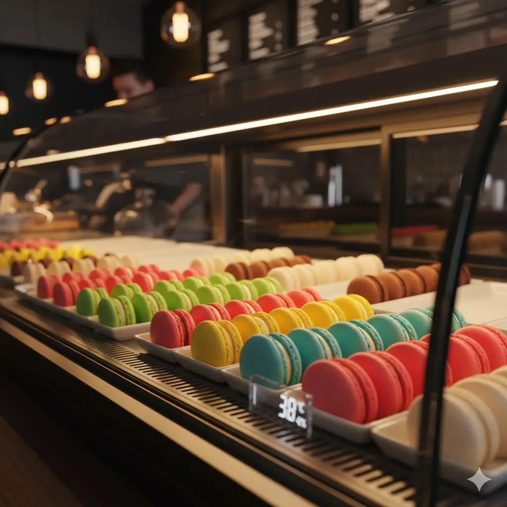 이 두 핵심 요소는 온도와 습도에 극도로 민감하여, 마카롱 매장 쇼케이스 관리가