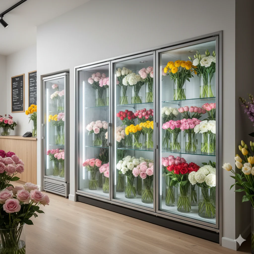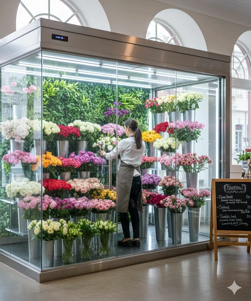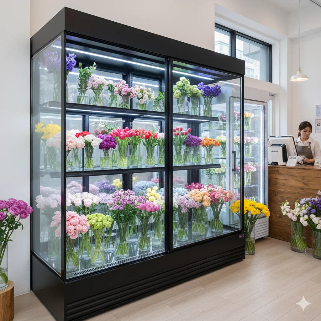 ์ํน์ฟจ๋ฌํ (Walk-in Cooler) | ์ฌ๋์ด ๊ฑธ์ด ๋ค์ด๊ฐ ๊ฝ์ ๊ณ ๋ฅผ ์ ์๋ ๋ํ ๋์ฅ ๊ณต๊ฐ. | ๋์ฉ๋ ๋ณด๊ด ๊ฐ๋ฅ, ๊ณ ๊ฐ ๊ฒฝํ ๊ทน๋ํ, ๋ก์ค์จ ๊ฐ์. | ์ด๊ธฐ ์ค์น ๋น์ฉ๊ณผ ๊ณต๊ฐ ํ๋ณด๊ฐ ํ์์ . |