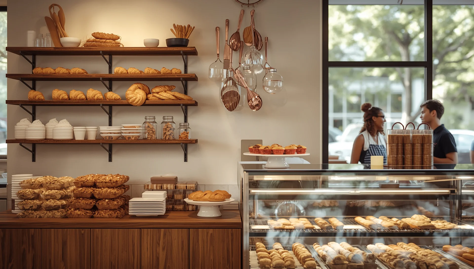 이러한 매장 인테리어 쇼케이스는 고객에게 자연스럽게 빵에 손이 가게 만드는 분위기를 만듭니다.