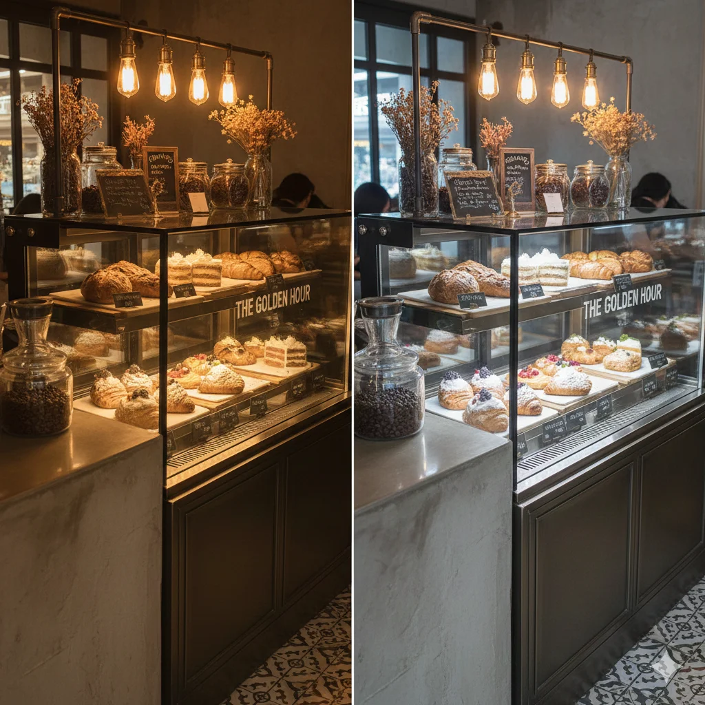Tip: 보통 제과 쇼케이스는 층마다 LED 조명이 달려 있습니다. 주문 제작 시 층별로 조명 색을 다르게 지정할 수도 있으니 제조사에 문의해 보세요.