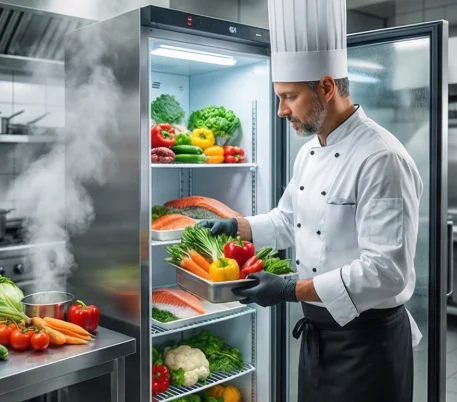 직냉식 | 수분 보존 우수, 저소음, 저전력 | 성에 제거 필요, 온도 편차 발생 가능 | 케이크, 샌드위치, 신선 정육 |
