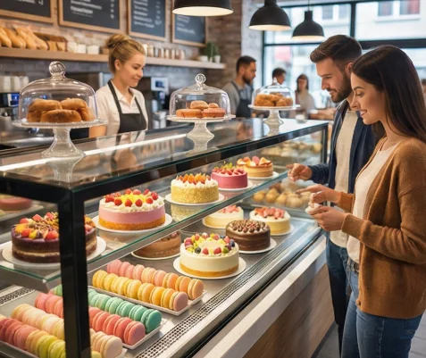 특징: 정밀한 저온(0~5°C)과 고습도 유지가 생명! 케이크가 마르면 상품 가치가 0이 되죠. 미려한 4면 강화 유리와 따뜻한 LED 조명이 필수입니다.