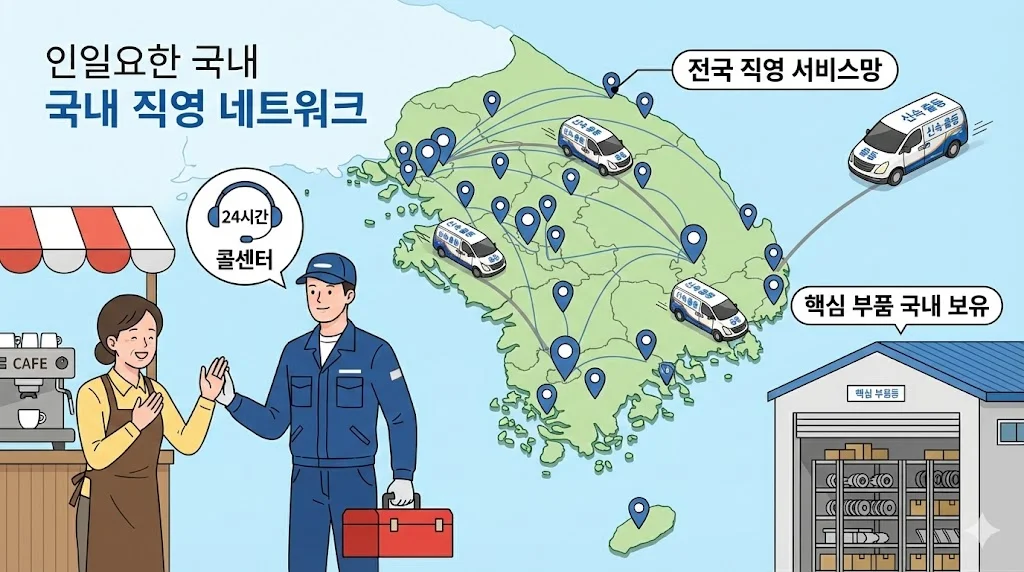 이러한 체계적인 관리 서비스는 장비의 수명을 획기적으로 늘려주고, 사장님이 장사에만 집중할 수 있도록 든든한 배경이 되어줍니다.