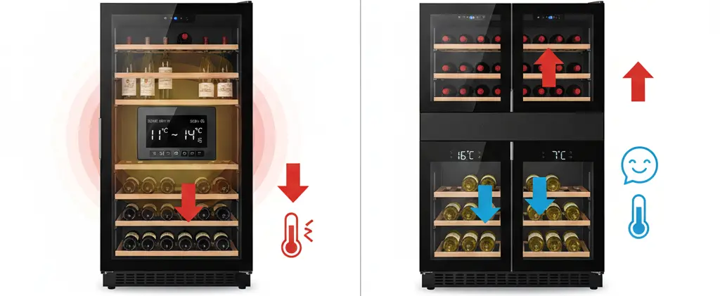 ๐ก๏ธ '์จ๋ ํธ์ฐจ'๊ฐ ์์ธ์ ๋ง์น๋ค: ์ ์์ฉ ์์ธ ๋์ฅ๊ณ ์ ๋์ผ ์กด(Dual Zone) ๊ธฐ์ ๊ณผ ๋จ์ผ ์กด ์์คํ ์ ๋ฐ ๋น๊ต ๋ถ์