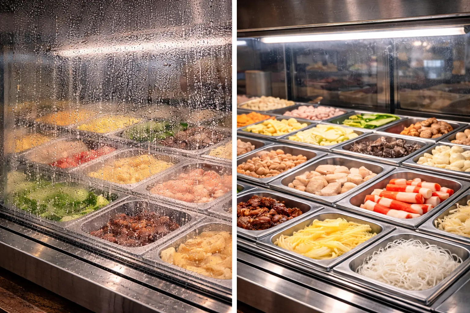 마라탕 쇼케이스는 수분이 많은 재료가 다수 사용되기 때문에 유리면 결로 발생 여부가 중요합니다.