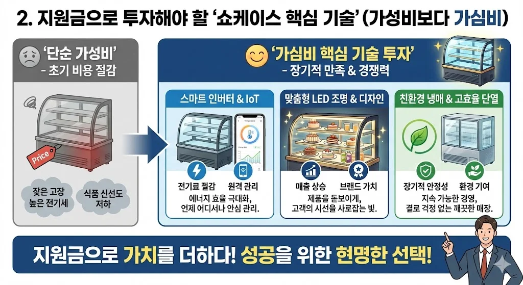 최근에는 스마트 기술이 접목된 '무인 판매 쇼케이스(스마트 벤딩머신)' 등도 지원 대상에 포함되는 경우가 많아요.
