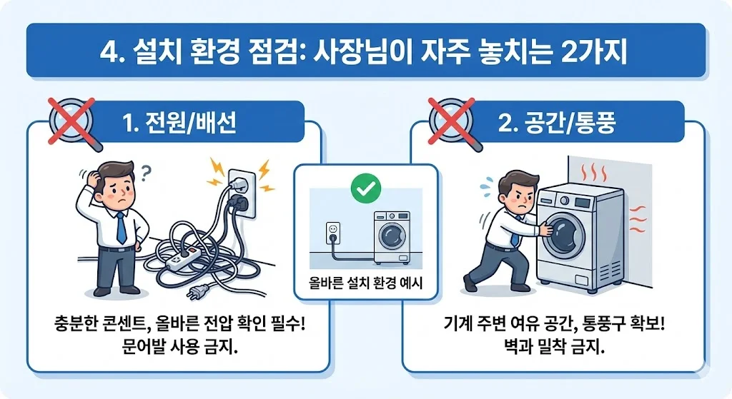 사장님들이 의외로 자주 놓치는 중요한 설치 환경 점검 사항 두 가지를 알려드릴게요.
