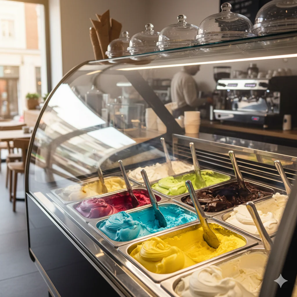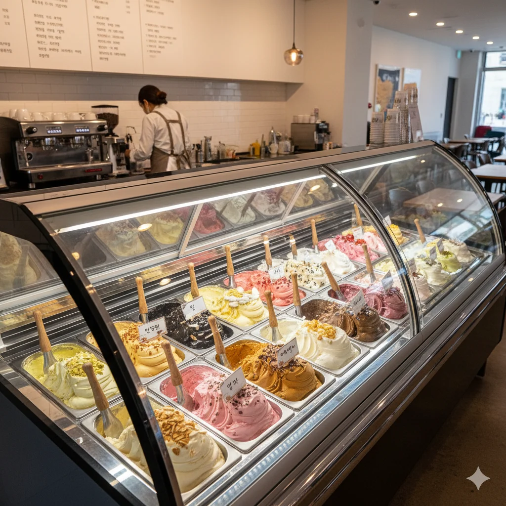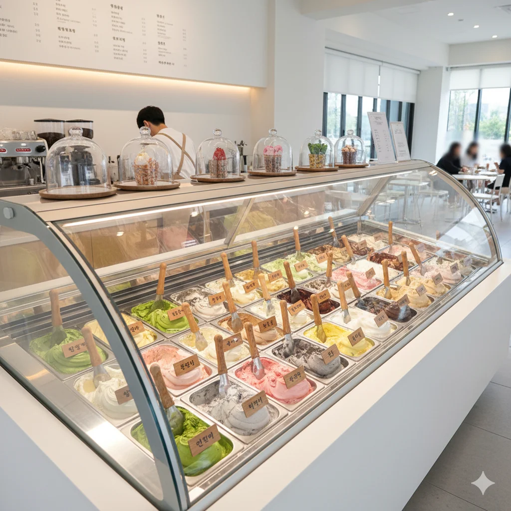 ์ค์ฟฑํ (Vetrina a Vaschetta): ๊ณ ๊ฐ์ ์์ผ์ ์ ค๋ผ๋์ ๋ค์ฑ๋ก์ด ์์๊ณผ ํ ํ์ด