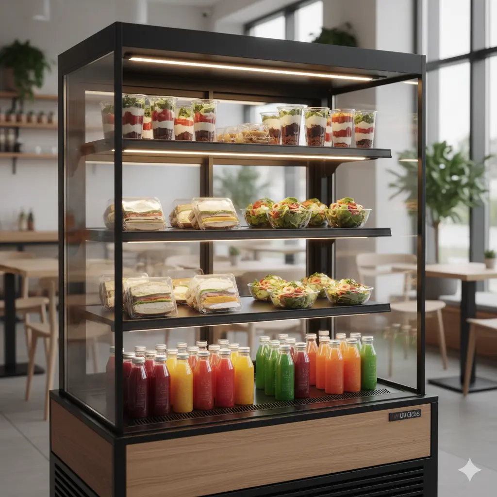 유동 인구가 많은 매장의 음료나 신선식품 코너에 적합합니다. 다만, 냉기가 개방된 공간으로 빠져나가기 때문에 도어형에 비해 에너지 효율이 낮을 수 있습니다.