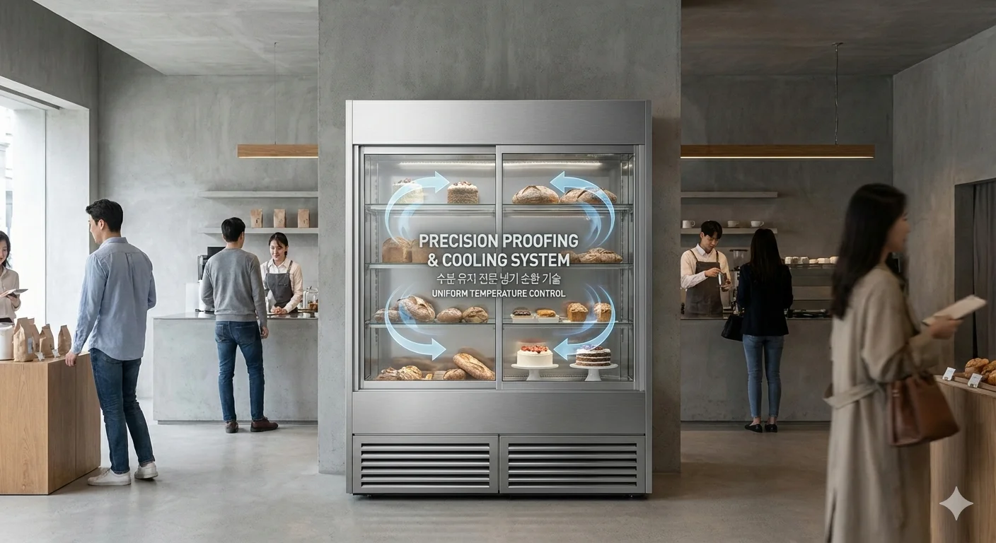 베이커리 냉장고의 핵심 기술은 '수분(습도) 유지'입니다.