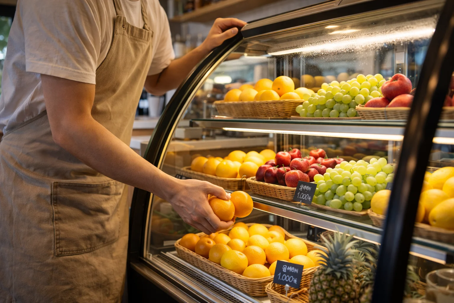 과일 쇼케이스는 하루 종일 사람이 만지는 장비입니다. 과일을 꺼내고, 채우고, 정리하고, 닦습니다. 이 과정이 불편하면 운영 피로도가 빠르게 쌓입니다.