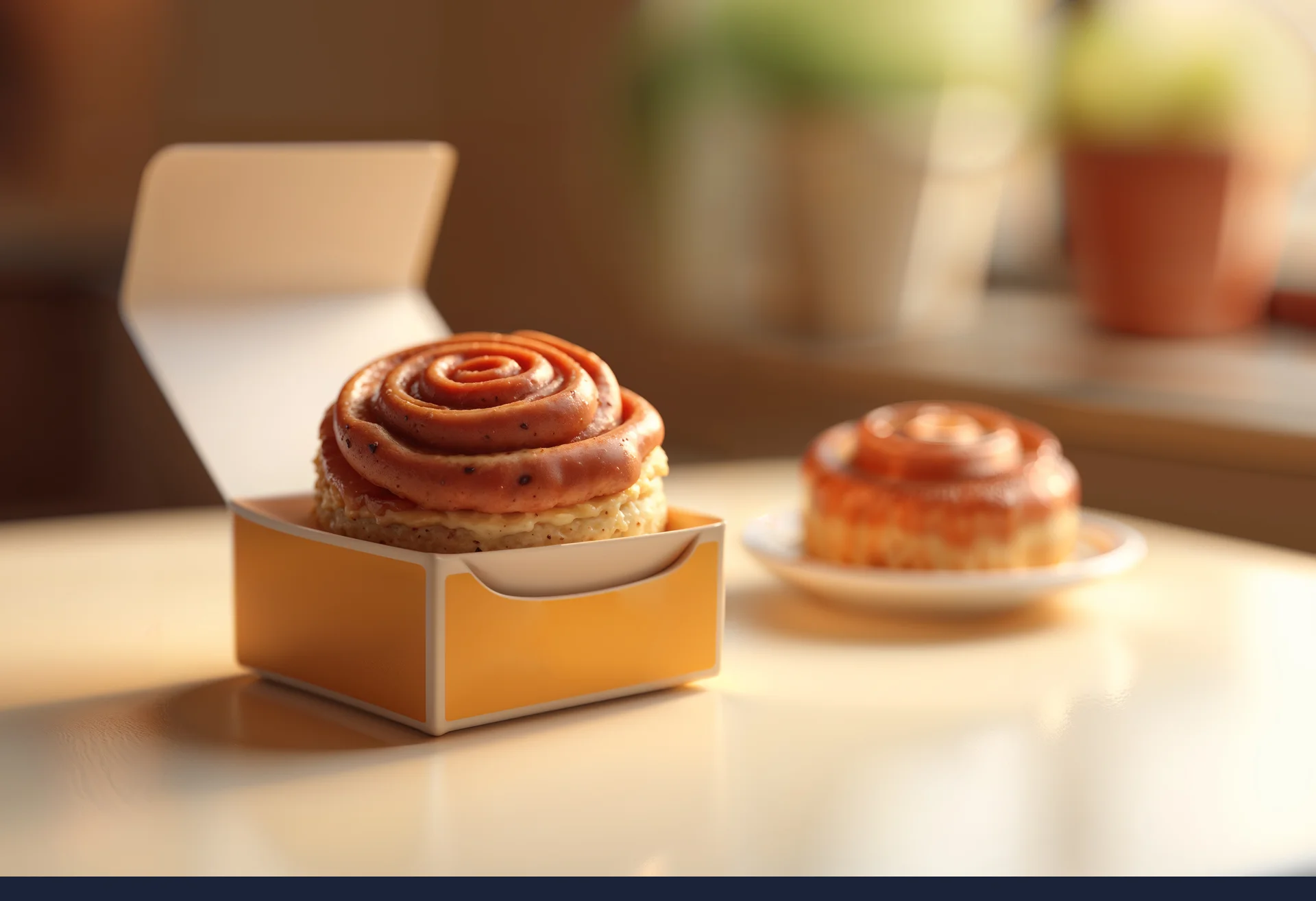 배경을 흐리게 날려주어 주변의 지저분한 요소(휴지통, 다른 테이블 등)를 가려주고, 오직 우리 가게의 메뉴만 돋보이게 만듭니다.