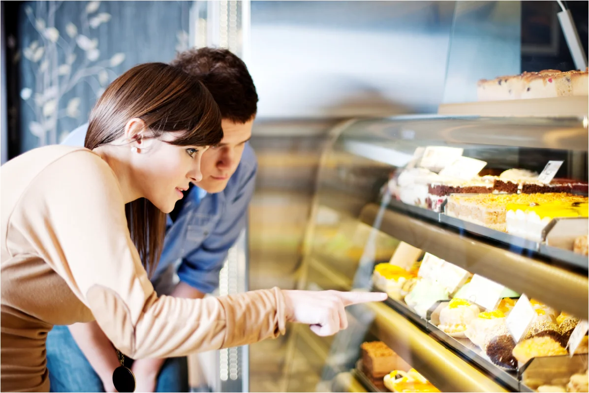 고객은 매장에 들어설 때 가장 먼저 눈길을 끄는 푸드 쇼케이스를 봅니다.
