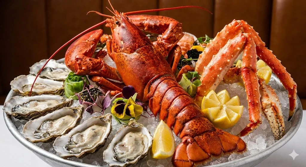 사장님의 푸드 쇼케이스 맨 윗단에 진열된 가장 비싸고 화려한 메뉴(예: 대형 랍스터 플래터, 3단 홀케이크, 최고급 한우 세트)가 있나요?