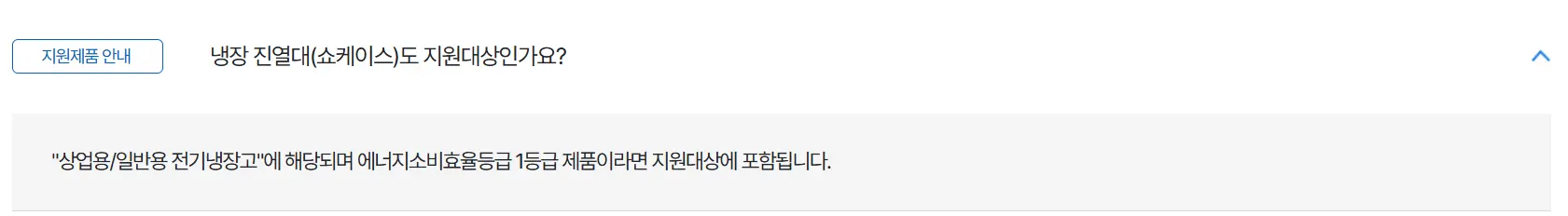 지원 금액은 제품 구매 가격의 무려 40%입니다. 품목별로 최대 한도가 정해져 있는데요. 쇼케이스 및 냉장고의 경우 사업자당 160만 원으로 구성되어 있습니다.