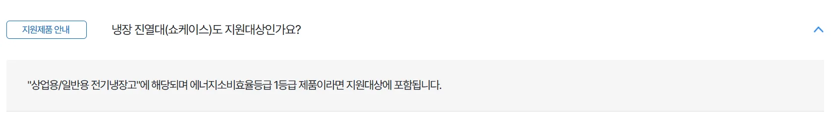 지원 금액은 제품 구매 가격의 무려 40%입니다. 품목별로 최대 한도가 정해져 있는데요. 쇼케이스 및 냉장고의 경우 사업자당 160만 원으로 구성되어 있습니다.
