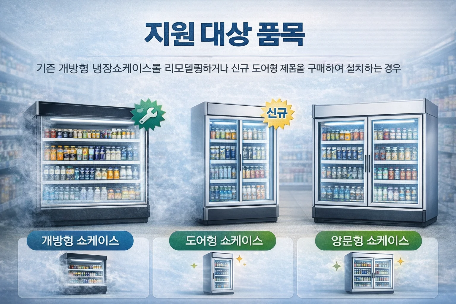 오래된 냉장고를 효율이 좋은 새 쇼케이스로 바꾸고 싶지만, 수백만 원에 달하는 교체 비용 때문에 망설이셨다면 오늘 이 글을 끝까지 읽어주세요.