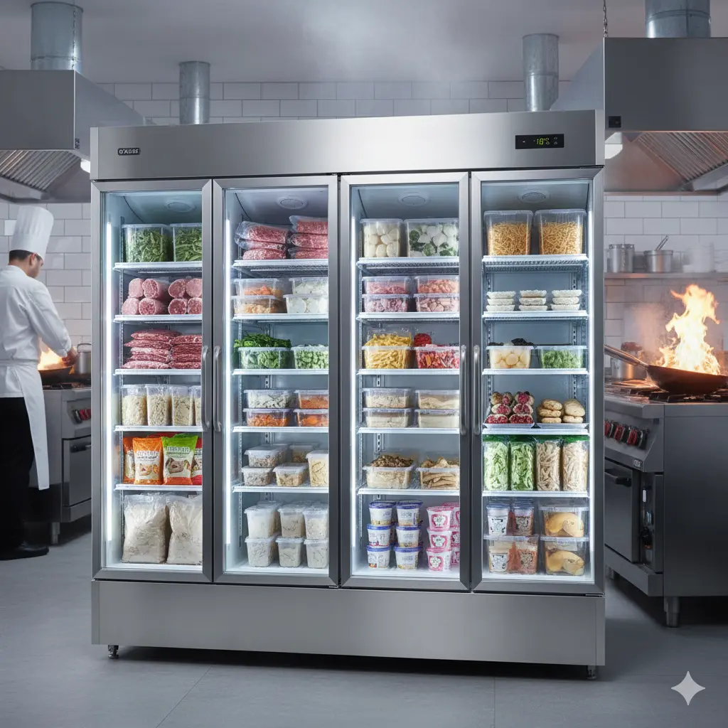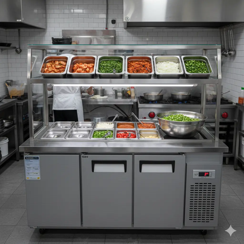 A: ์ทจ๊ธํ๋ ๋ฉ๋ด์ ๋ฐ๋ผ ๋์ฅ๊ณ ์นธ ๊ตฌ์ฑ์ ์ ํํด์ผ ํฉ๋๋ค (45๋ฐ์ค 4๋์ด ๊ธฐ์ค).