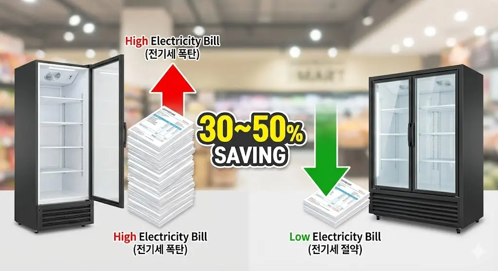 대형 마트나 동네 슈퍼, 편의점을 운영하시다 보면 가장 고민되는 것 중 하나가 바로 '오픈형 쇼케이스'의 전기세이지요.