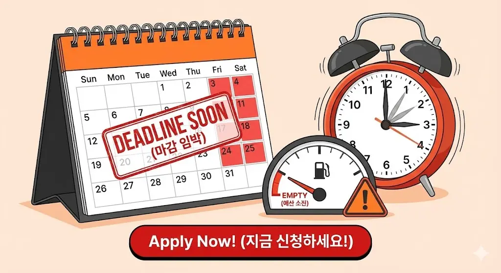 "내년에 해야지" 하고 미루다 보면 정작 예산이 소진되어 혜택을 못 받는 안타까운 상황이 생길 수 있답니다.