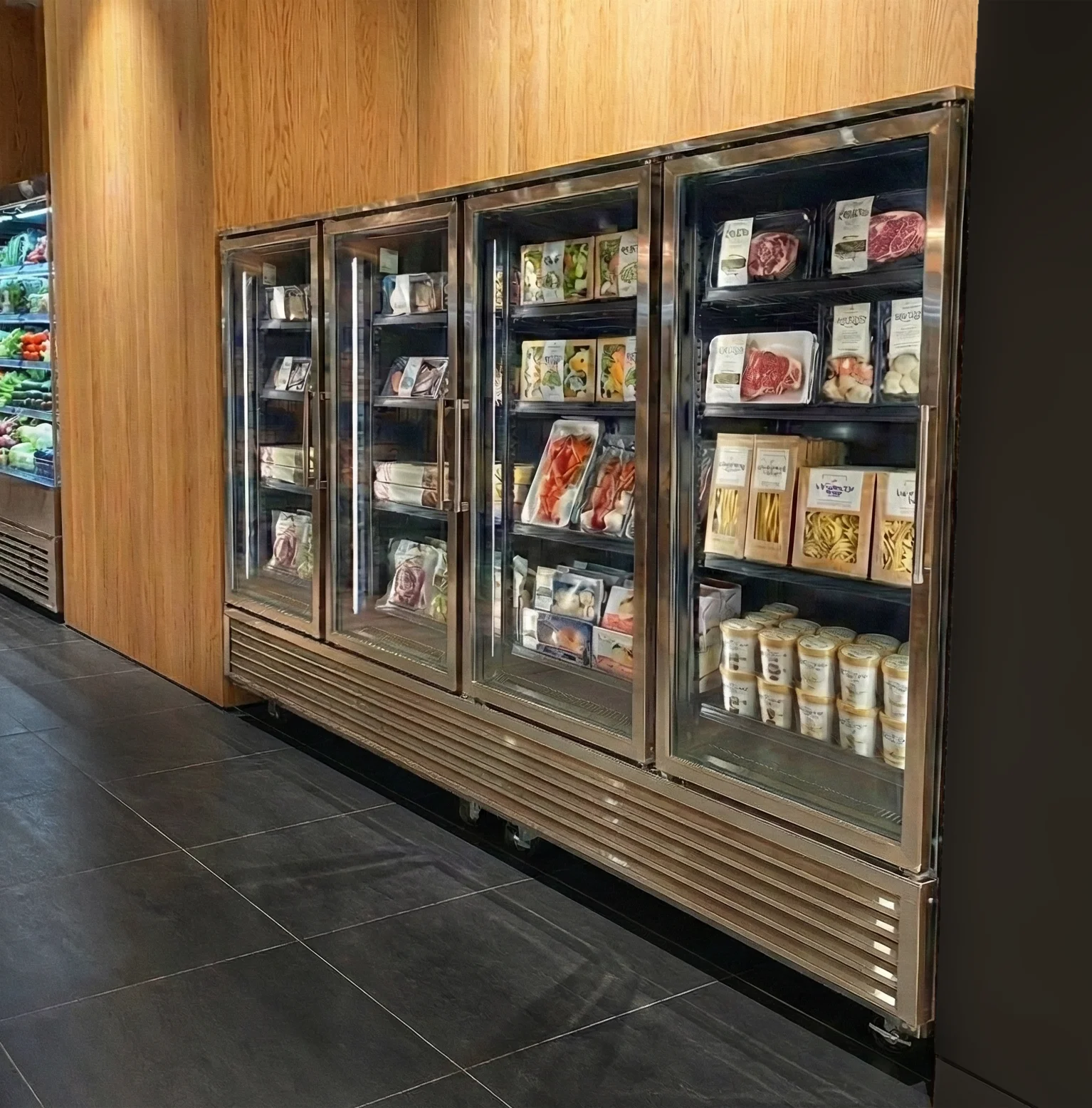무인 밀키트 점포 | 인버터 수직 냉동 쇼케이스 | 24시간 가동에 따른 저소음 및 저전력 |