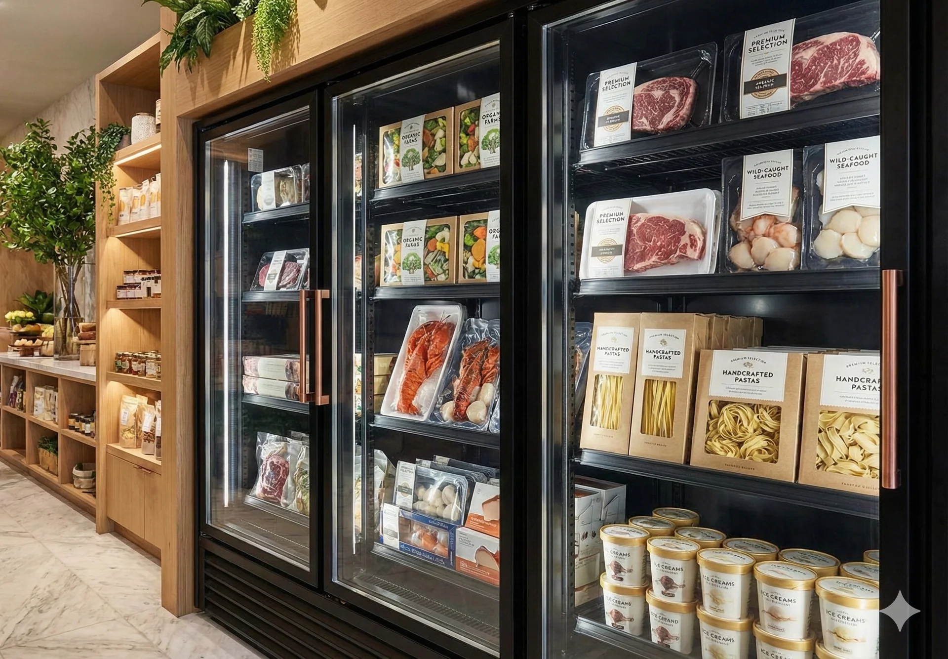 일반 업소용 냉동고와 프리미엄 쇼케이스의 차이는 단순히 가격에 있지 않습니다. 이는 '보존 기술'과 '전시 효과'의 차이에서 발생합니다.
