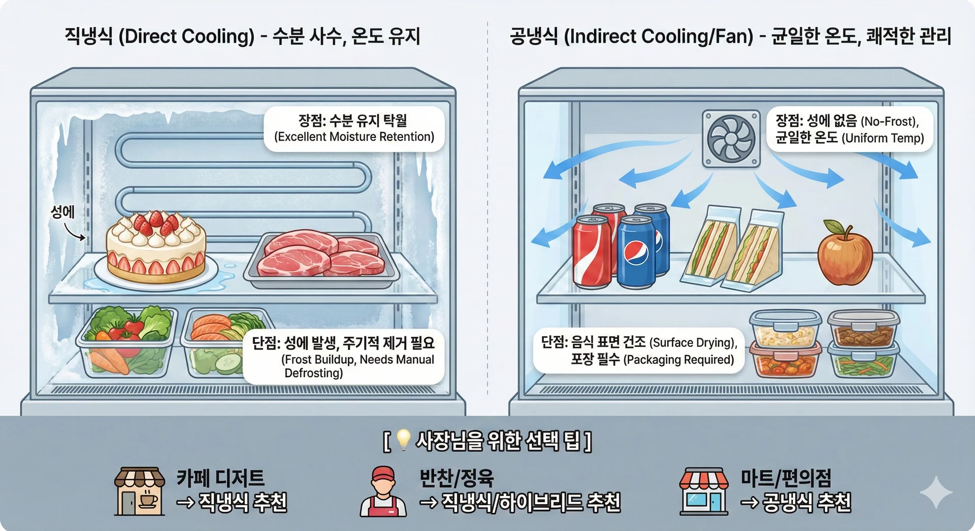 ๋์ฅ๊ณ ๋ด๋ถ ๋ฒฝ๋ฉด์ ๋งค๋ฆฝ๋ ๋๊ฐ ํ์ดํ๊ฐ ์ฐจ๊ฐ์ด ๋๊ธฐ๋ฅผ ์ง์ ๋ฟ์ด๋ด๋ ๋ฐฉ์์ ๋๋ค. (์: ๊น์น๋์ฅ๊ณ , ์์ด์คํฌ๋ฆผํต)