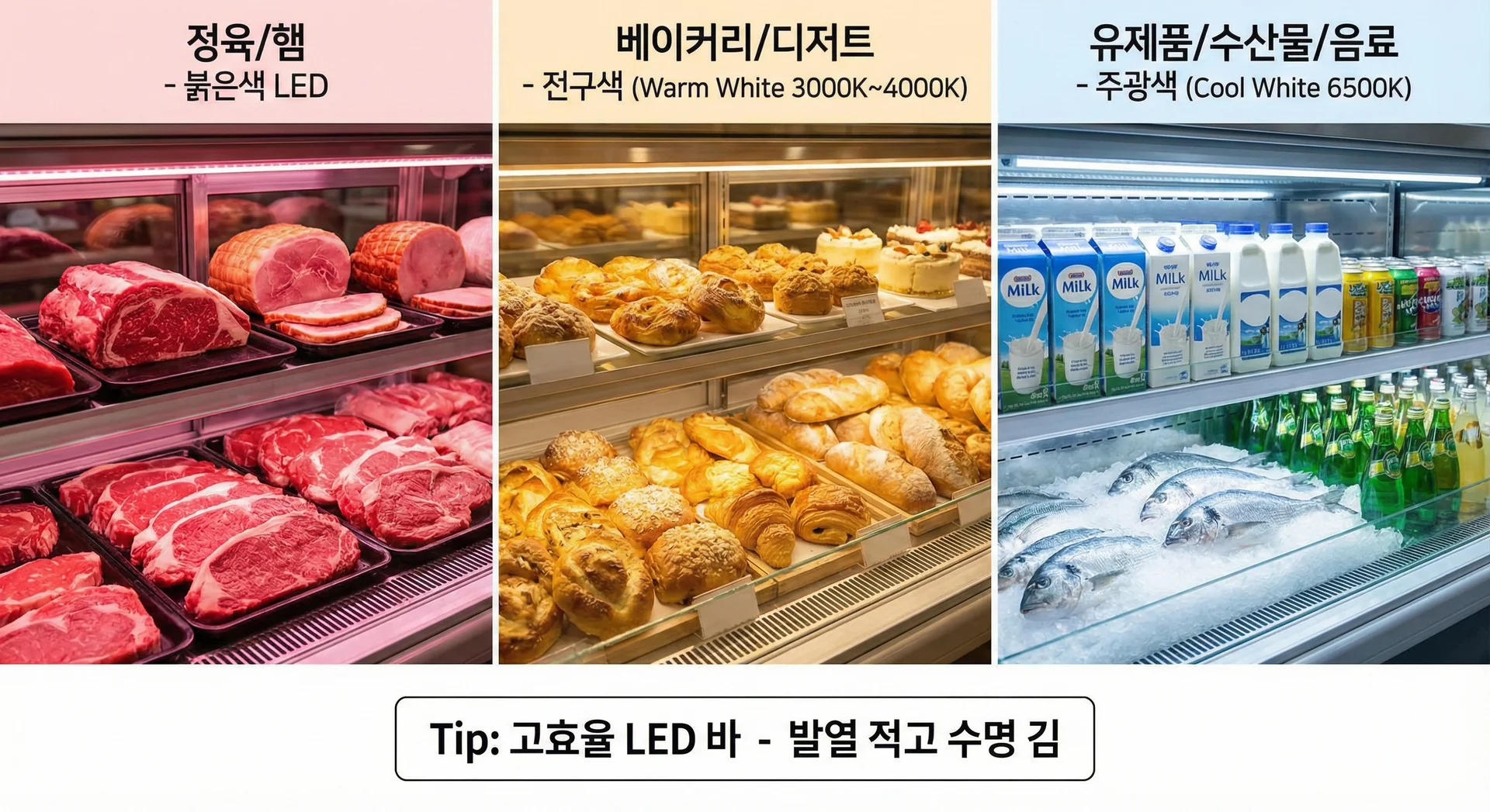์๋ช ์ด ๊ธด ๊ณ ํจ์จ LED ๋ฐ(Bar)๊ฐ ๊ฐ ์ ๋ฐ๋ง๋ค ์ค์น๋์ด ์๋์ง ํ์ธํ์ญ์์ค.